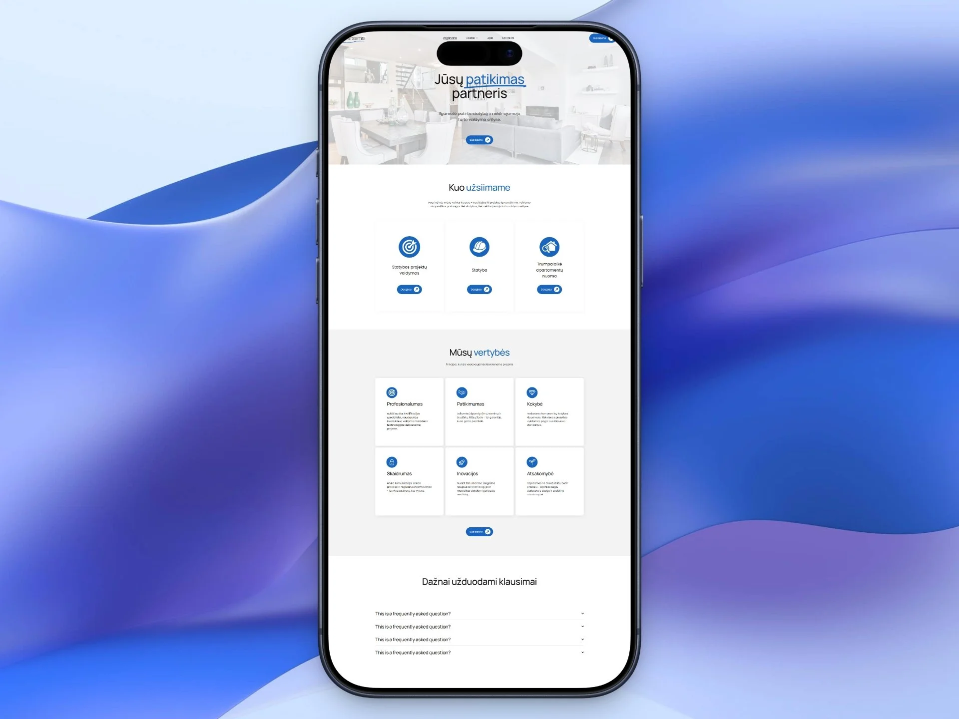 Suprojektavau ir sukūriau reprezentacinę verslo svetainę, orientuotą į aiškų paslaugų pristatymą ir patogų klientų kontaktą. Dėmesį skyriau struktūrai, naudotojo patirčiai ir techniniam įgyvendinimui, kad svetainė būtų patikima ir lengvai valdoma.
